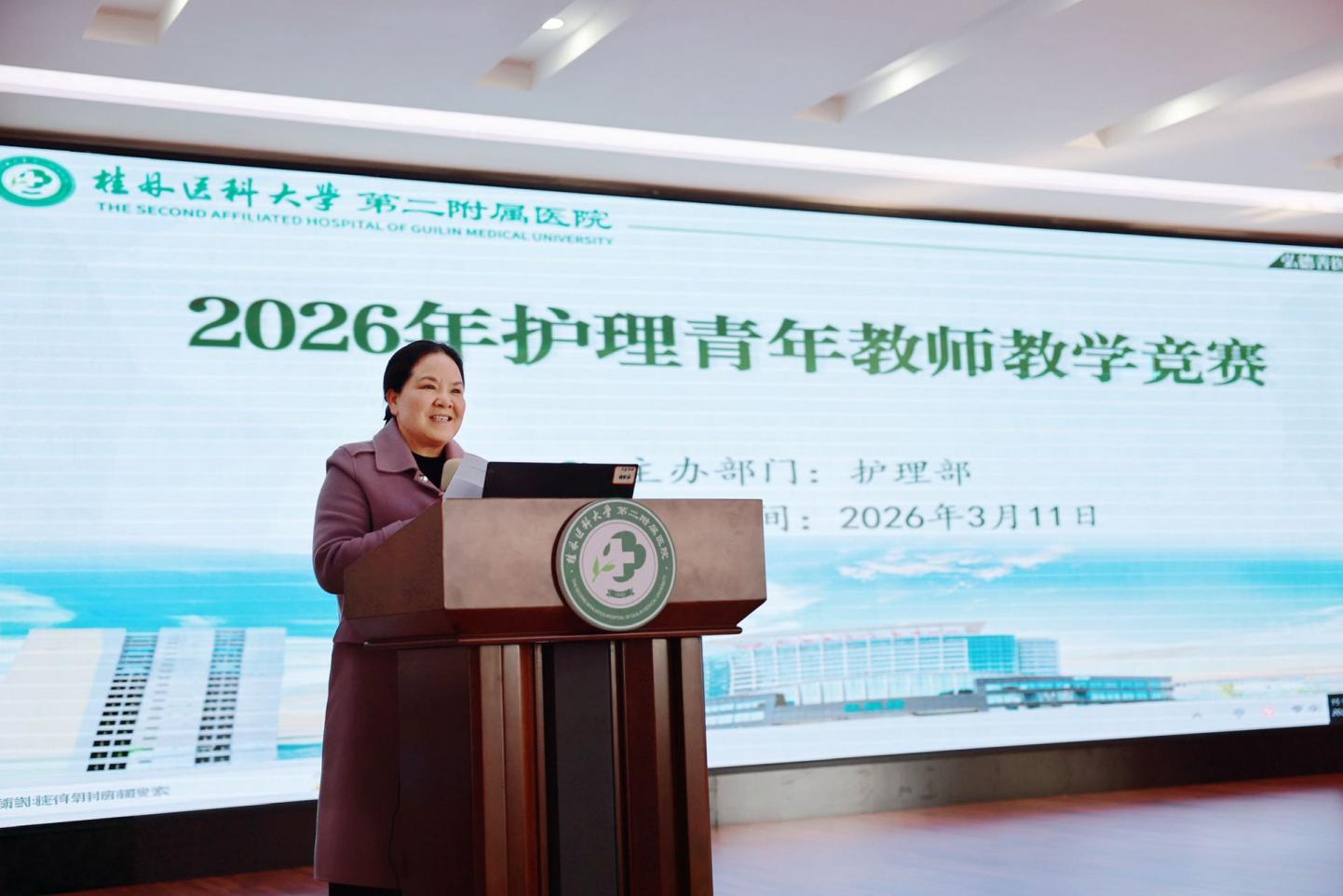 为深化临床护理教学内涵建设,进一步提升护理青年教师教学能力,挖掘优秀的临床护理教学人才,3月11日下午护理部在9号楼3楼会议室举行2026年护理青年教师教学竞赛,护理部主任谭李军、副主任魏虹、潘兰、大科护士长曾洪华、李燕,肝胆胰外科护士长黄春琴担任评委。全体护士长及临床护理教师约160余人到场观摩。