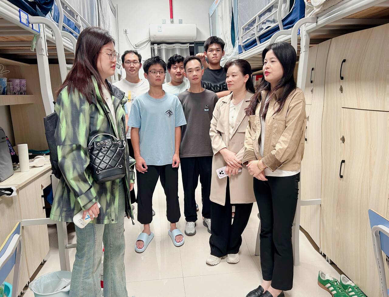 为深入了解2025级新生入学适应情况,筑牢学生宿舍安全防线,2025年10月21日傍晚,新生班级大学生导师高露萍、辛敏,辅导员敬晓娟一同走进临桂校区学生宿舍,开展暖心走访活动。